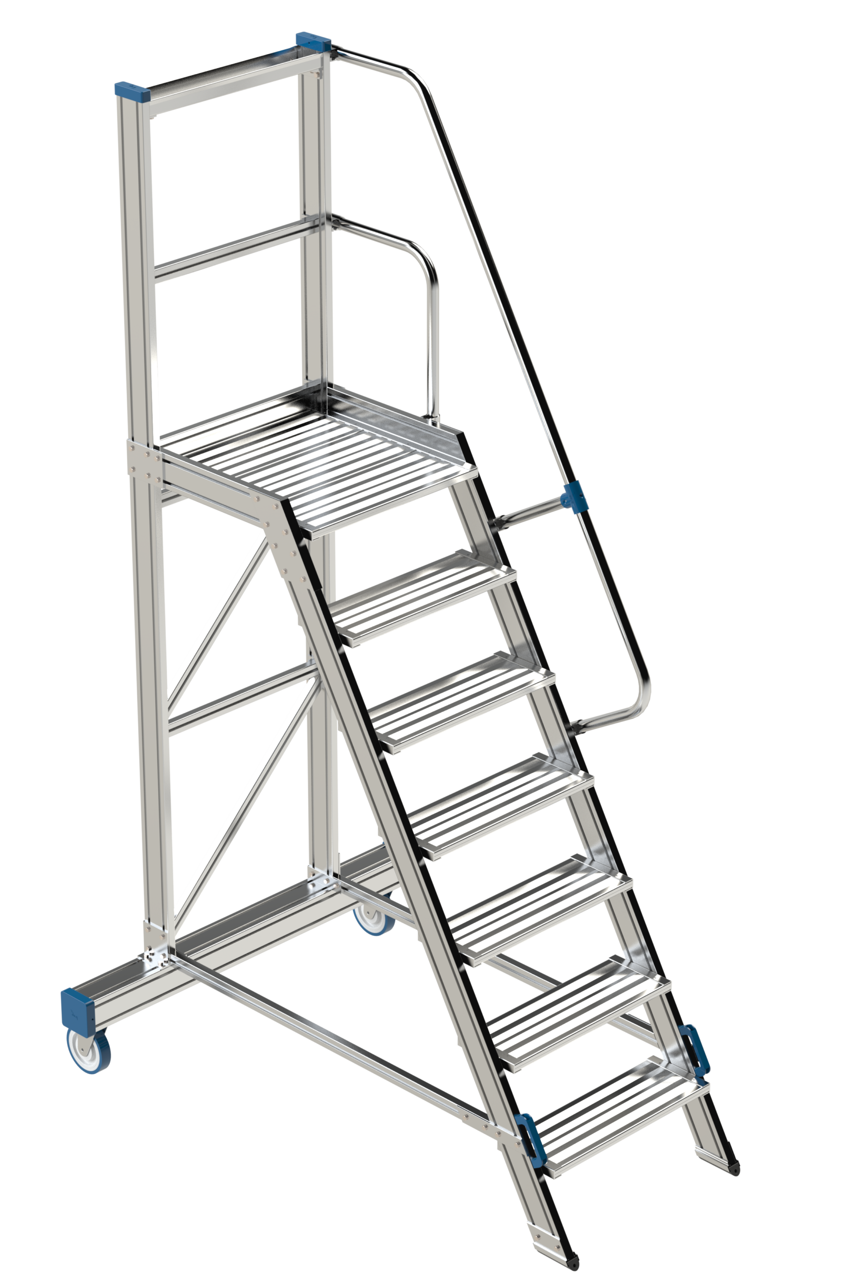 Die Plattform hat 2 eingebaute Geländer.